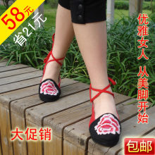 清仓2017春款绣花鞋老北京布鞋民族风女鞋单鞋平底绑带千层底