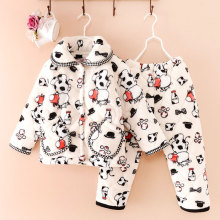 儿童法兰绒睡衣小孩冬季加厚男童女童珊瑚绒家居服大宝宝夹棉套装