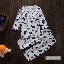 春秋儿童绵绸睡衣薄夏季长袖男童女童宝宝家居服纯棉绸睡衣套装裤