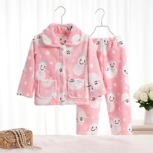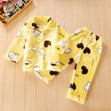 秋冬儿童珊瑚绒睡衣宝宝法兰绒睡衣套装大中小童保暖家居服