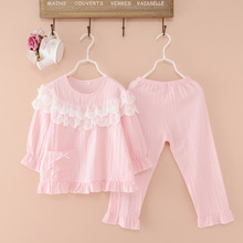 2017春儿童纯棉睡衣中小童女童家居服宝宝母女装蕾丝韩版亲子睡衣