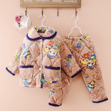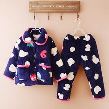 儿童珊瑚绒夹棉加厚宝宝男童女孩冬季睡衣法兰绒家居服中大童套装