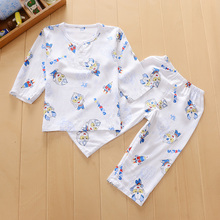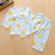 包邮春夏男童纯棉绸男孩女童长袖长裤套装卡通家居服 儿童睡衣