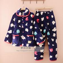 包邮大码珊瑚绒睡衣长袖套装保暖家居服女士秋冬季加厚法兰绒夹棉
