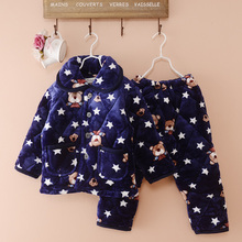 冬季儿童加厚三层夹棉品质贝贝绒睡衣男女童家居服小孩珊瑚绒套装