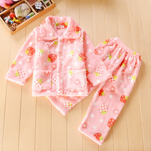 秋冬儿童法兰绒睡衣套装珊瑚绒宝宝水貂小孩男女童加厚夹棉家居服
