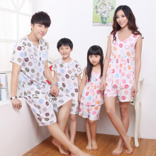 春夏季绵绸女童儿童宝宝睡衣短袖中裤中大童亲子装棉绸家居服套装