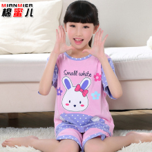 短袖女童睡衣夏季纯棉中大童女孩童装小孩儿童家居服套装7-9周岁