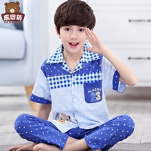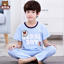 夏季男童睡衣短袖纯棉儿童睡衣中大童男孩夏天薄款空调家居服套装