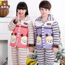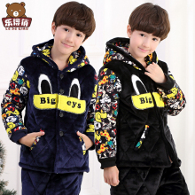 儿童珊瑚绒睡衣夹棉长袖加厚男孩秋冬季大童女童法兰绒家居服套装