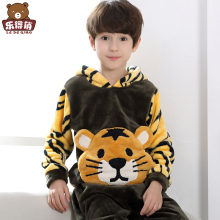 法兰绒儿童睡衣冬季加厚款男童珊瑚绒长袖大童男孩小孩宝宝家居服