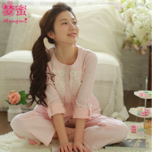 梦蜜 日系蕾丝月子服孕妇夏季浦乳睡衣秋季纯棉纱布产妇家居服