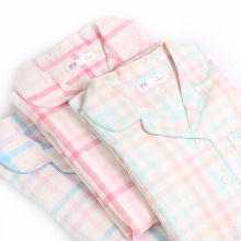 梦蜜 彩格 纯棉纱月子服 春夏长袖产后哺乳装产妇喂奶衣孕妇睡衣
