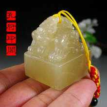 青海石昆仑冻玉石精雕貔貅印章印石 篆刻印章 姓名藏书