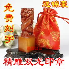 青田石印章龙凤 石包刻字 印石 手工金石篆刻印章 刻字 送锦囊