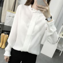 白衬衫女长袖韩范2016新款潮学院风宽松雪纺荷叶边女上衣学生衬衣