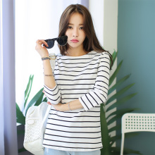 春装新款条纹t恤女大码宽松中长款体恤纯棉长袖女装针织打底衫潮