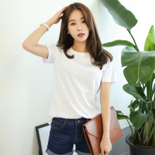 韩版夏装短袖T恤女宽松纯棉纯色百搭上衣大码体恤女士基础打底衫