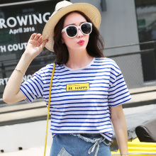 天天特价 夏女装学生简约宽松时尚条纹圆领短袖上衣棉打底t恤