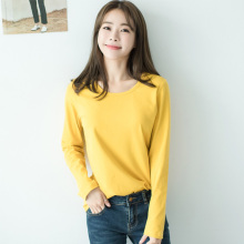 2017春装新款弹力宽松长袖打底衫棉T恤女纯色圆领百搭基础色上衣