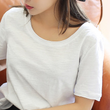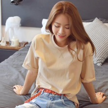 夏装韩国新款纯色圆领宽松大码百搭竹节棉T恤女学生休闲上衣短袖