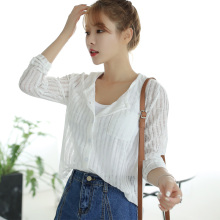 韩版女装2017春季新款潮女薄外套短款长袖衬衫开衫百搭女士棉上衣