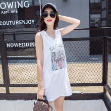 无袖连帽雪糕印花连衣裙女宽松背心裙 夏季新款中长款印花长t恤