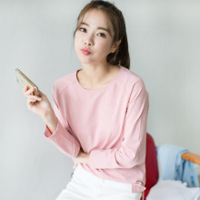 插肩袖韩版上衣春装2017新款长袖T恤女宽松内搭竹节棉纯棉打底衫