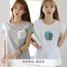 【天天特价】印花t恤女短袖2017新款韩版春夏纯棉简约休闲体恤