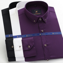 欧保罗春季男士长袖衬衫竹纤维商务修身免烫男装