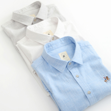 欧保罗2017新款棉麻短袖衬衫夏季白色休闲透气衬衣亚麻修身寸衫男