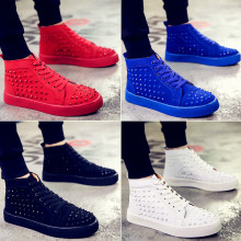 春夏2017新品韩版铆钉男士高帮鞋子增高夜店CL红底板鞋子水钻潮鞋