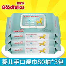 好家伙婴儿湿巾80抽带盖3包共240抽 宝宝柔湿纸巾儿童湿巾纸-1