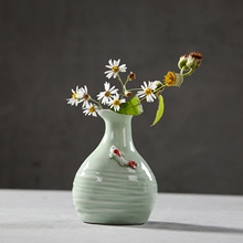 手绘龙泉青瓷小花瓶 手工花器水培插花花道 古典精致工艺品摆件