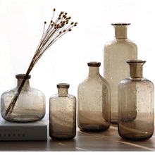 北欧式简约气泡花瓶玻璃透明摆件烟灰色咖啡色茶色客厅桌面插干花