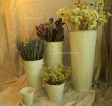 【无耳款铁皮桶】复古仿古做旧防水白铁皮长花桶 铁桶 花器 花瓶