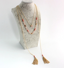 八九不离十 欧美饰品长款粉晶石卷珠多层个性项链 链条流苏项链