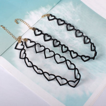 5866 II青岛饰品厂家日系热销原宿黑色镂空爱心项圈颈圈