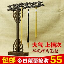鸡翅木双凤祥云笔挂文房四宝书法用品毛笔架 毛笔挂笔架实木
