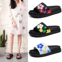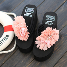 夏季甜美人字拖女防滑厚底坡跟凉拖鞋中跟可爱花朵学生休闲沙滩鞋