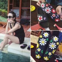 韩版夏季一字拖女厚底防滑潮流沙滩凉拖鞋室内外夏天度假花朵拖鞋