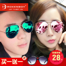 2016潮流粉色墨镜女士太阳镜圆脸大框蛤蟆镜驾车反光彩膜太阳眼镜