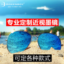 新款定制配近视太阳镜男士潮人墨镜女偏光炫彩膜蛤蟆镜带度数镜片