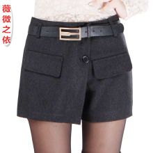 薇微之依春韩版新款毛呢女短裤打底裤裙包臀休闲直筒裤热裤子秋冬