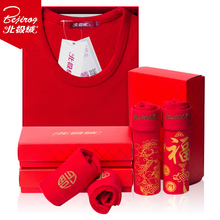 北极绒大红色情侣秋衣秋裤女纯棉圆领结婚本命年男士保暖内衣套装