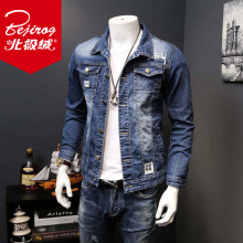 北极绒秋冬潮男牛仔外套青年男修身字母夹克韩版时尚休闲男装外衣