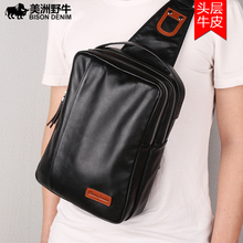 美洲野牛真皮男士胸包斜挎包男包腰包牛皮休闲单肩包男韩版背包潮