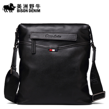 美洲野牛男包真皮单肩包斜挎包牛皮邮差包横款背包休闲男士小包包