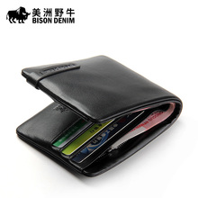 美洲野牛钱包男短款真皮正品竖款皮夹头层牛皮钱夹软皮超薄钱包潮