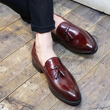 夏季新款男士真皮流苏休闲皮鞋尖头英伦风时尚低帮套脚发型师潮鞋
